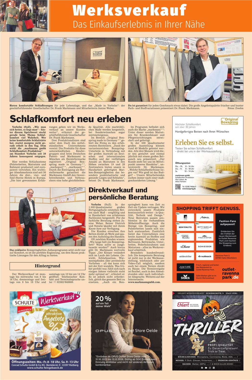 Die Werksausstellung in Ahlen-Vorhelm ist geöffnet Montag bis Mittwoch von 8 bis 16 Uhr, Donnerstag und Freitag von 8 bis 18 Uhr und am Samstag von 10 bis 14 Uhr. Ein individueller Beratungstermin – auch außerhalb der genannten Öffnungszeiten – ist ebenso möglich wie eine Videoberatung.