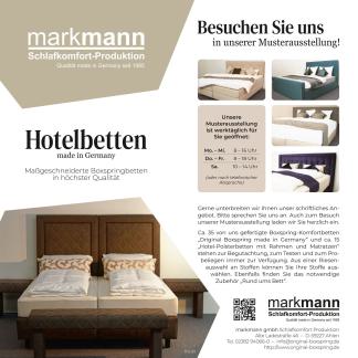 Schneller Überblick über (fast) alle Möglichkeiten. Informationen über unsere unterschiedliche Boxspring-Modelle, Matratzen und Kopfstücke bis hin zu Toplayern und Hygieneabdeckungen finden Sie in diesem Prospekt. |